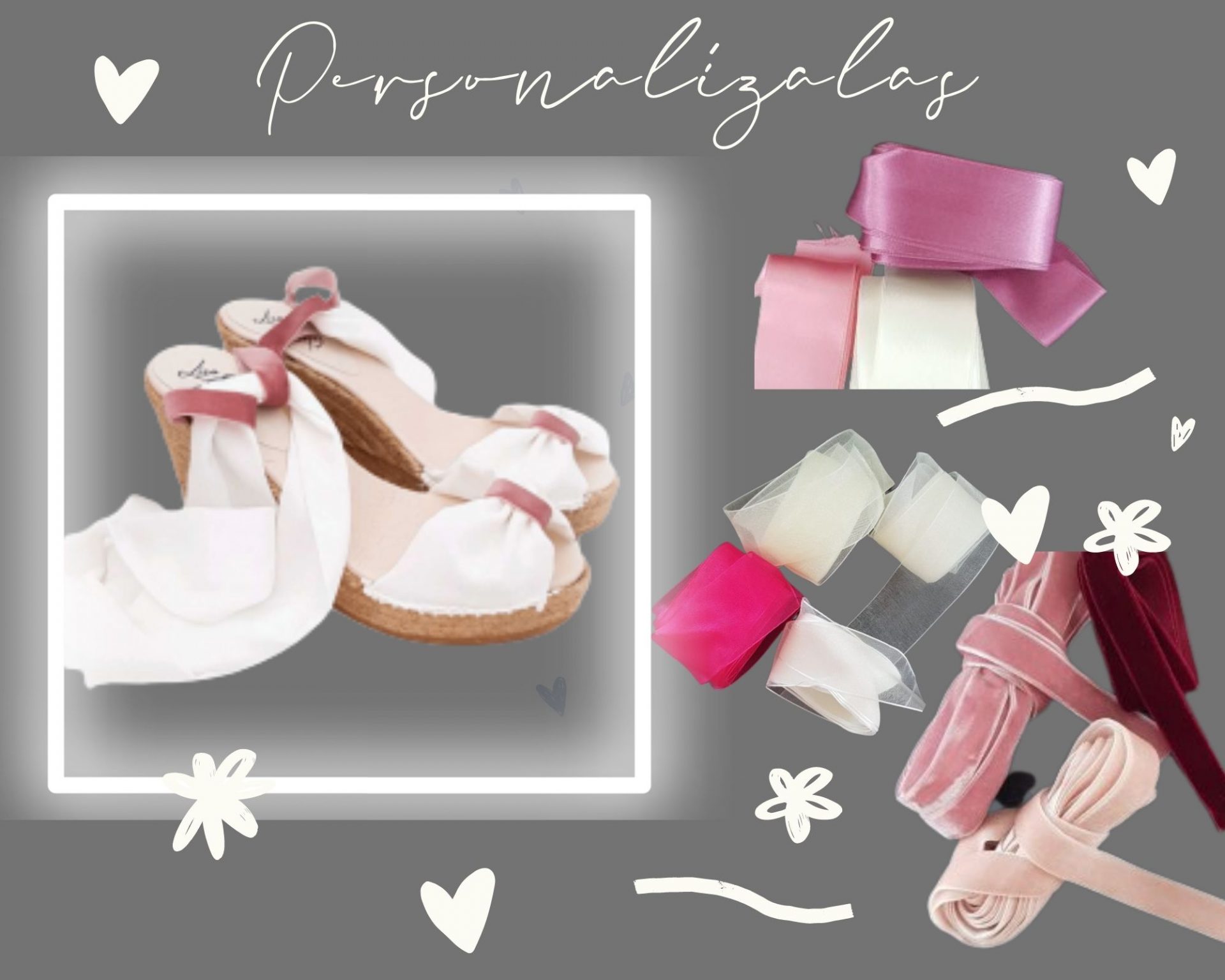 Puedes confeccionarlas con la tela del vestido, añadir los lazos del color principal de tu paleta de colores, o tu ramo, bordar las iniciales o algún motivo especial. De ese modo, crearás un modelo único para ti.